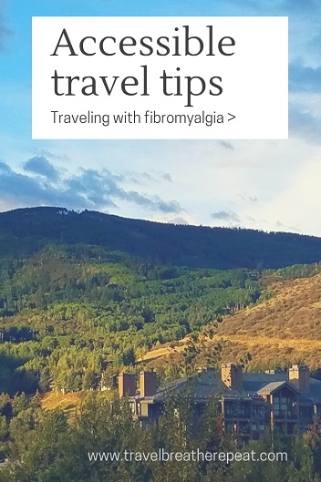 Erin is our latest guest author on the topic of accessible travel. Erin writes a humor blog about being a mom while living with fibromyalgia and some other conditions thrown in there for fun. She doesn’t travel often, but recently went on a trip to Colorado and learned a lot about what it’s like traveling with a chronic illness (or three). Even though Sarah has a completely different condition, she can very much relate to all of Erin’s advice (and Justin fully endorses the “travel light” tip!). We hope you find her tips for traveling with fibromyalgia helpful as well.